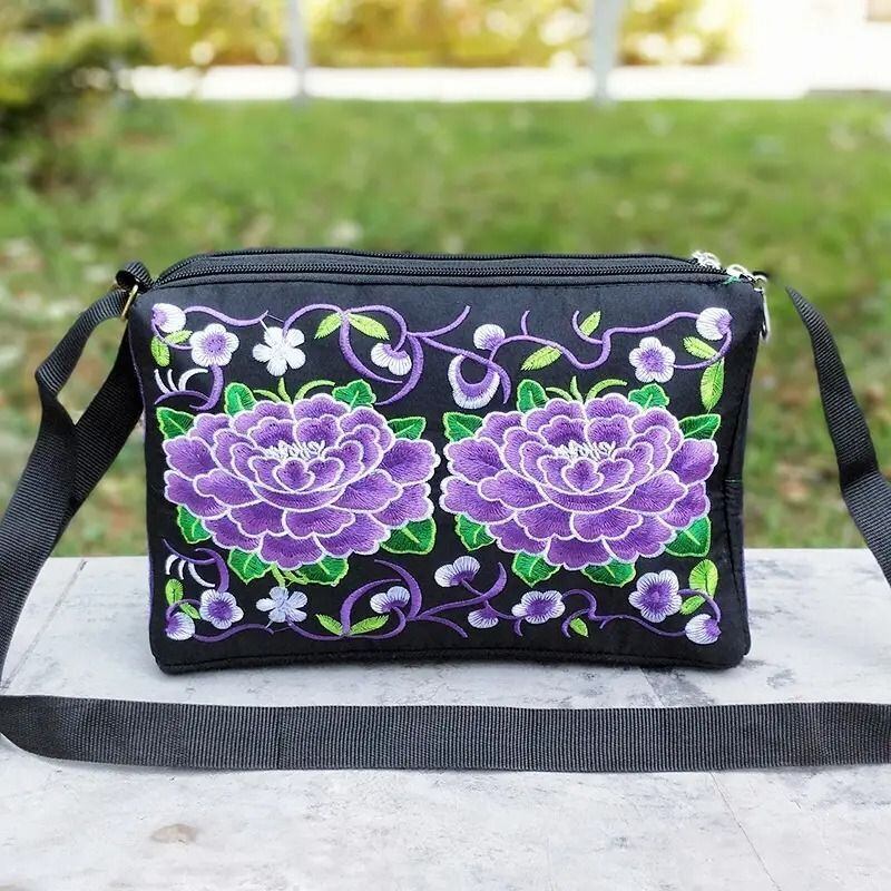 花柄刺繍クロスボディバッグ ショルダーバッグ 軽量 ストラップ 調整可能 カジュアルクロスバディバッグ アーティスティックフレイヤ―バッグ クロスボディ財布 刺繍細部 7色展開 キャンバス素材 ジッパー開閉 レディース ファッション バッグ 華やか おしゃれ | Under River/海外輸入インテリア家具.雑貨
