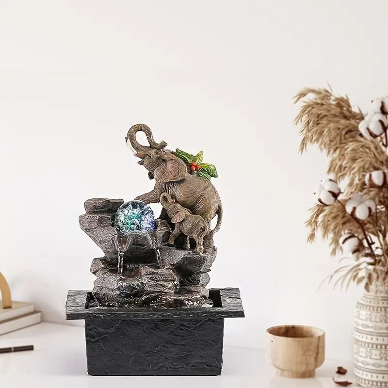 卓上噴水 室内噴水 流水飾り ミニ噴水 循環水 ポンプ式 滝 ウォーターフォール ゾウ 象 エレファント 置物 オーナメント クリスタルボール LEDライト USB電源 風水 開運 金運アップ 富 財運 玄関 リビングルーム 寝室 書斎 オフィス ホテル | Under River/海外輸入インテリア家具.雑貨