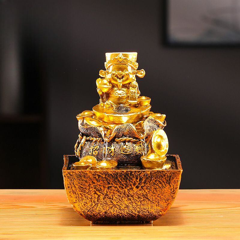 卓上噴水 室内噴水 流水飾り ミニ噴水 循環水 ポンプ式 滝 ウォーターフォール 富の神 ゴールド 金色 中国 置物 オーナメント USB電源 金運アップ 富 財運 癒し リラックス リビングルーム ダイニング 寝室 書斎 オフィス デスク テーブル 棚 | Under River/海外輸入インテリア家具.雑貨