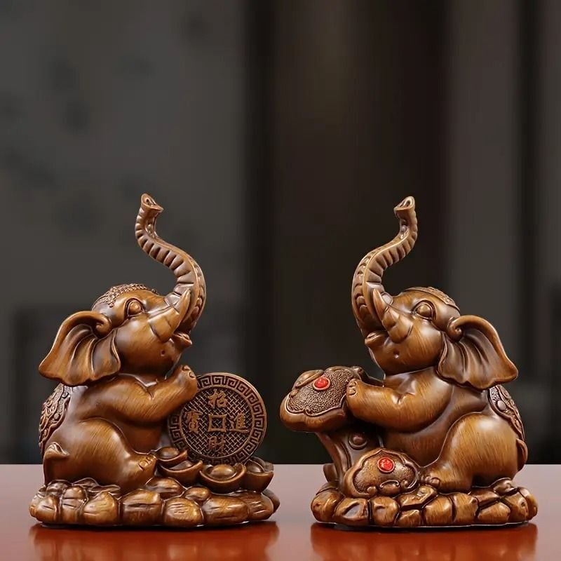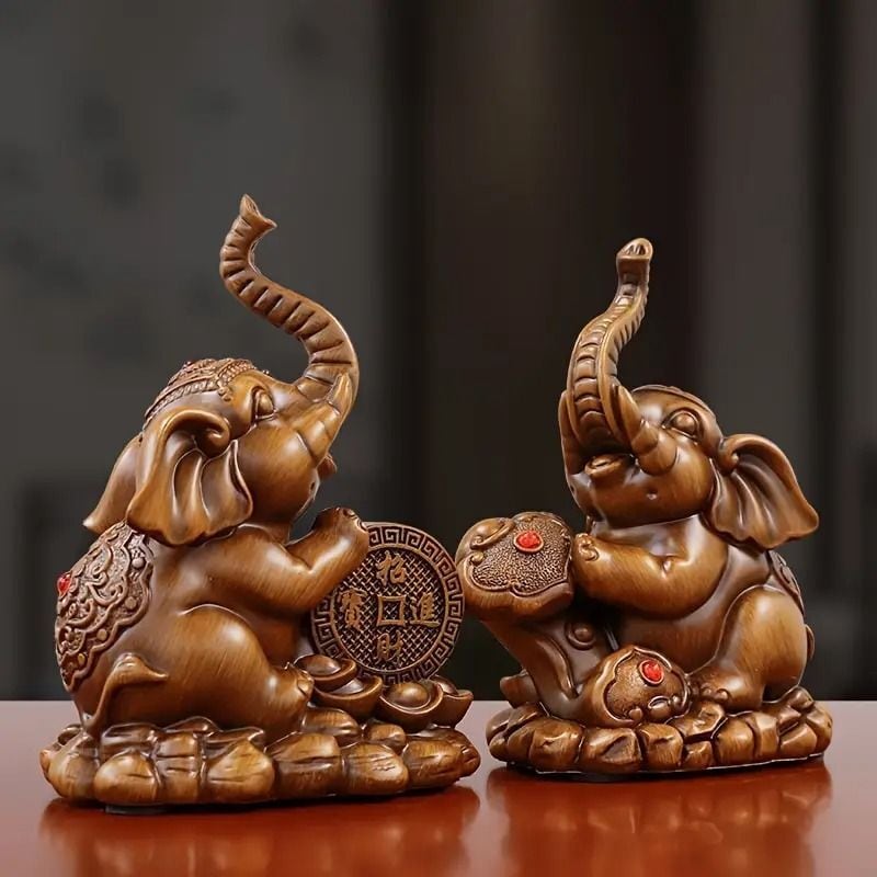 この木目調の象のペア置物は、シンプルでありながらエレガントなデザインが特徴のインテリアアイテムです。象は幸運を象徴する動物として広く知られ、邪気を払い、ポジティブなエネルギーを引き寄せるとされています。そのため、この置物をお部屋に置くことで、心地よい雰囲気と共に、幸運を招くお守りとしても活躍します。