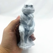 この可愛らしいカエルの置物は、金運アップや商売繁盛、出世などを願う縁起物として非常に人気のあるアイテムです。考える人のポーズを取ったカエルは、まるで大切な決断を下すように、じっくりと物事を考える姿勢を象徴しています。その姿勢から、豊かな思考と成功を引き寄せる力を感じさせ、見る人にポジティブなエネルギーを与えてくれます。