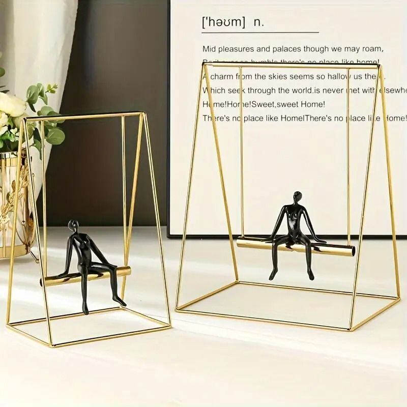鉄と樹脂のしっかりとした作りながらも、ブランコに乗る人形が軽やかな印象を与えます。スイングする様子が、見る人に癒しとリラックス感をもたらし、ライトラグジュアリーな雰囲気を演出します。オフィスのデスクやテーブルに飾ることで、仕事の合間にほっとしたひとときを提供してくれるでしょう。