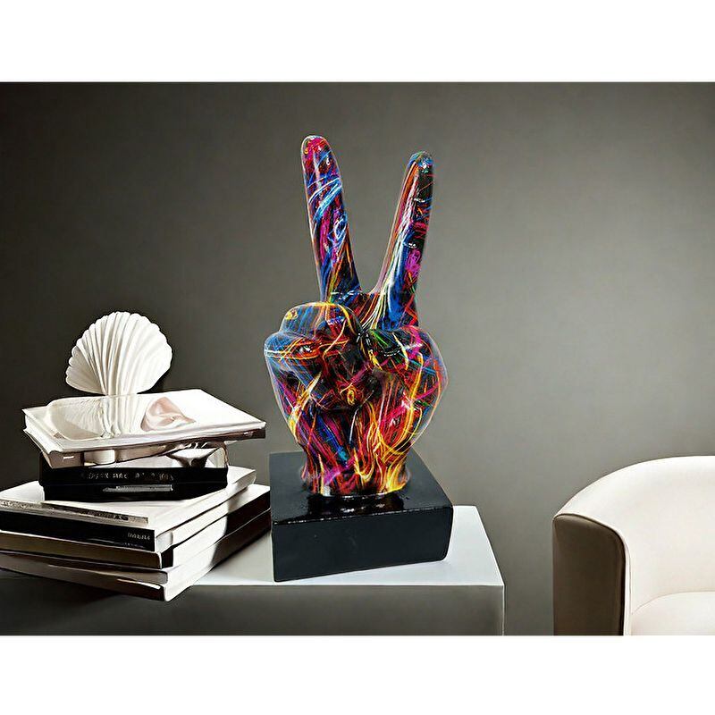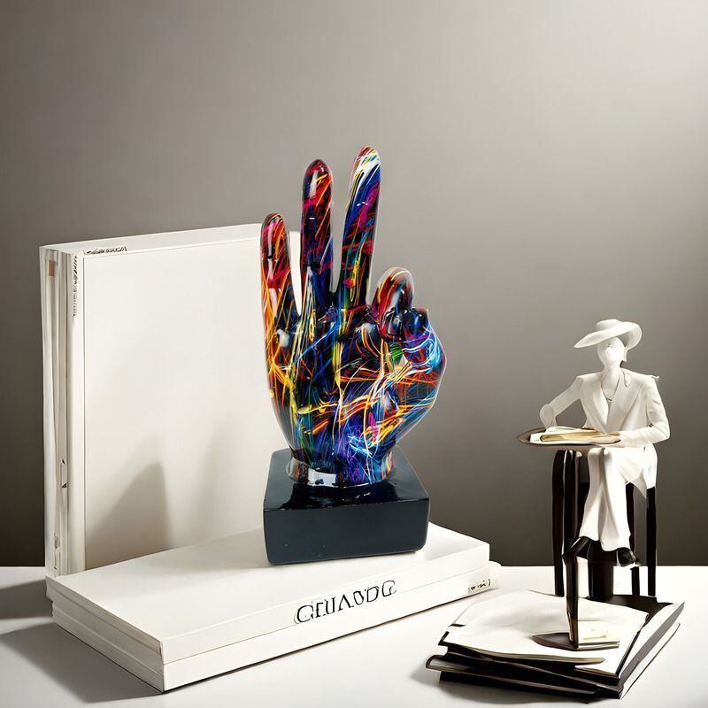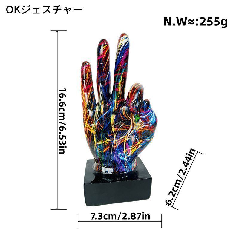 この「ハンドサインのフィギュア」は、カラフルなレインボーカラーが特徴的なアートオーナメントです。ユニークで遊び心あふれるデザインが魅力で、インテリアに楽しいアクセントを加えます。お洒落で可愛い雰囲気を持ちながらも、どこか洗練された印象を与えるこの置物は、玄関やリビングルーム、ダイニング、寝室、子供部屋、書斎、オフィスなど、さまざまな空間にぴったりです。