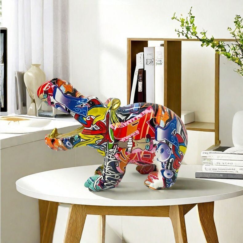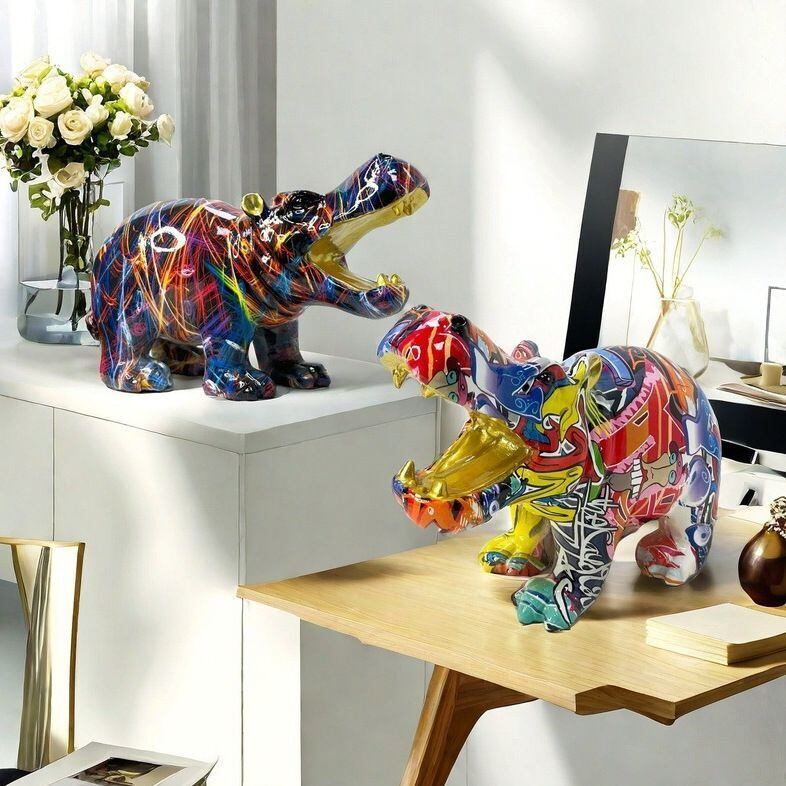 このカラフルなカバの置物は、見る人を元気づけるアートなデザインが特徴のポップでおしゃれなインテリアアイテムです。動物モチーフが好きな方にはもちろん、アート好きやユニークな装飾品を探している方にもぴったり。河馬(ヒポポタマス)をモチーフにしたこのフィギュアは、その愛らしい表情と色鮮やかな色合いで、リビングルームやダイニング、寝室、書斎、オフィスなど、あらゆる場所を楽しく彩ります。