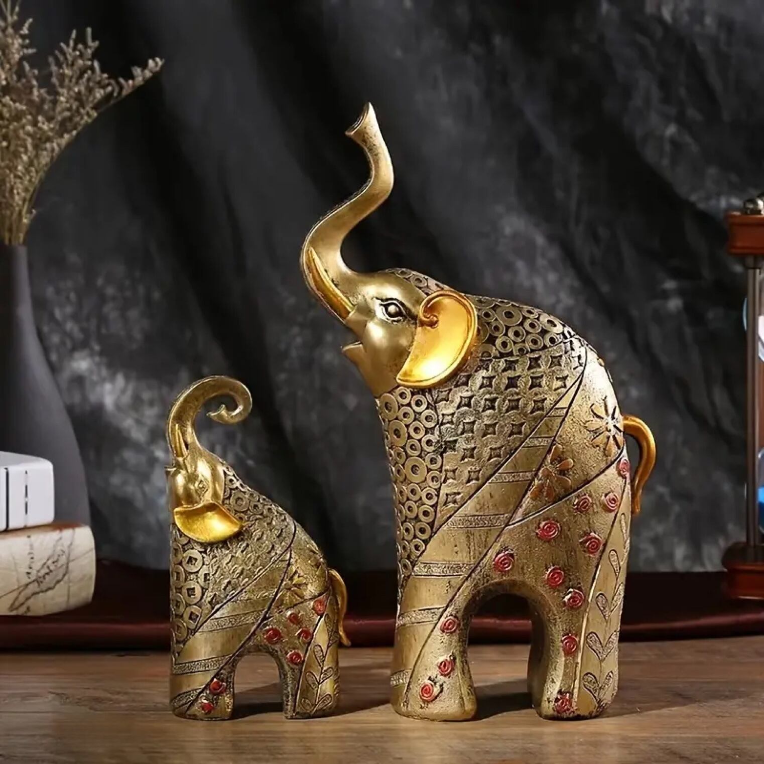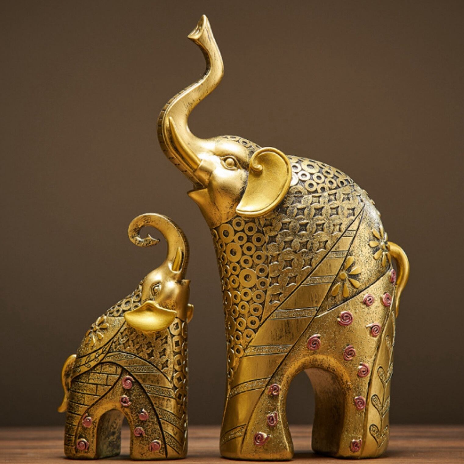インテリア雑貨 オーナメント 象 福 縁起物 装飾彫像 ホームデコレーション アクセサリー 工芸品 リビング オフィス 玄関 オブジェ ペア モダン ヨーロッパスタイル ゴールド プレゼント ギフト | Under River/海外輸入インテリア家具.雑貨