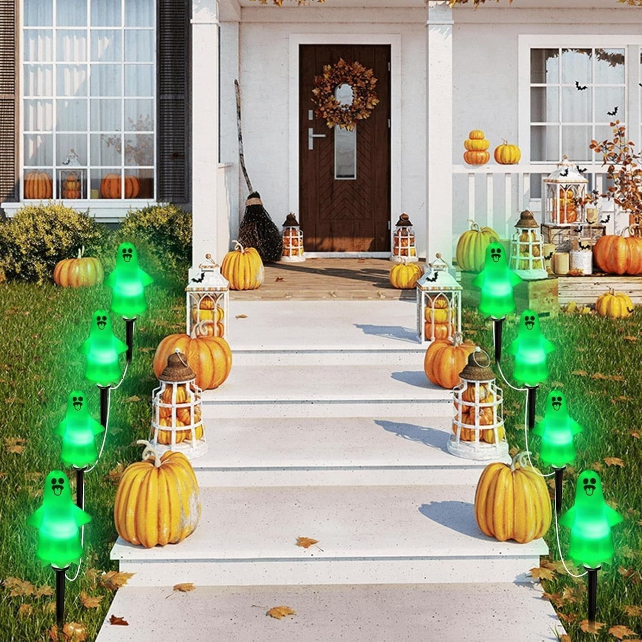 ハロウィン ハロウィン雑貨 ハロウィンパーティ ライト ガーデンライト 照明 庭 屋外 かわいい おばけ ゴースト 8個 太陽光 ソーラー パーティー小物 デコレーション 装飾 キラキラ | Under River/海外輸入インテリア家具.雑貨