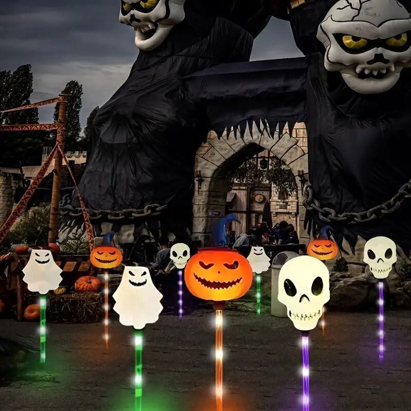 ハロウィン ハロウィングッズ ガーデニングライト 6個セット ソーラーライト ソーラー充電 ナイトライト パーティー かぼちゃ おばけ ガイコツ | Under River/海外輸入インテリア家具.雑貨