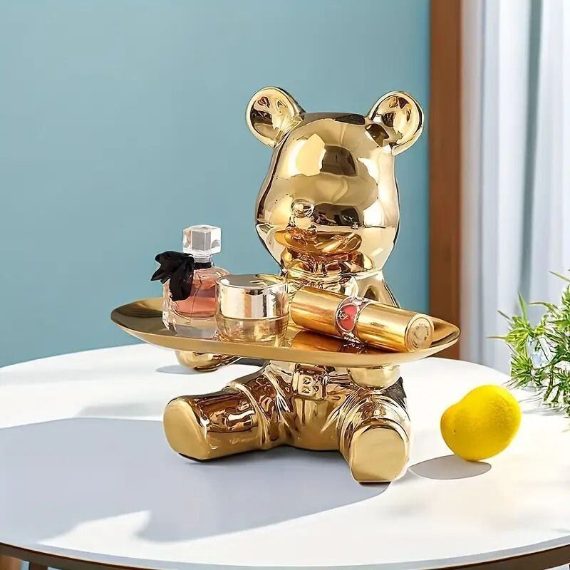 愛らしいクマの形をしたセラミックメッキの小物入れ。リビングや玄関に置いても、インテリアのアクセントになります。小さな小物を収納するのに最適で、可愛さと実用性を兼ね備えたインテリア雑貨です。