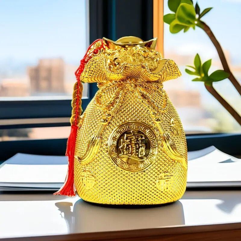 貯金箱 ゴージャス 中華 開運 幸運 金運招福 金袋 財布 小銭 置物 オブジェ 華やか ゴールド レッド 雑貨 おもしろ雑貨 インテリア プレゼント ギフト | Under River/海外輸入インテリア家具.雑貨