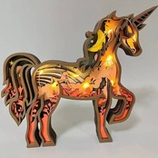 ユニコーンの姿をした木製のオブジェが登場!木彫りで作られたこの可愛らしい置物は、お部屋のインテリアにピッタリなアクセントになります。優しい光が差し込む、ライトアップ機能もついています。