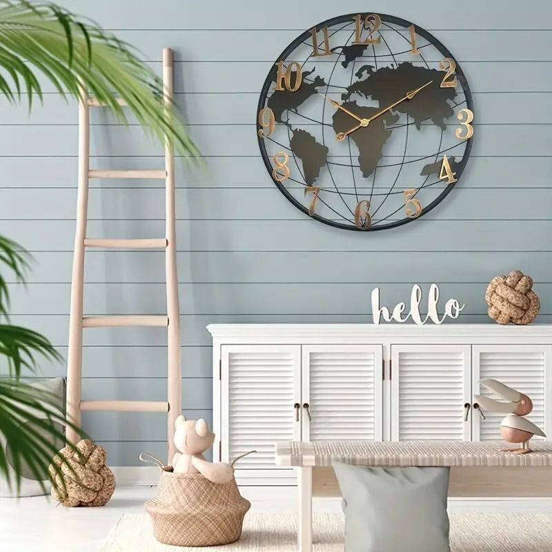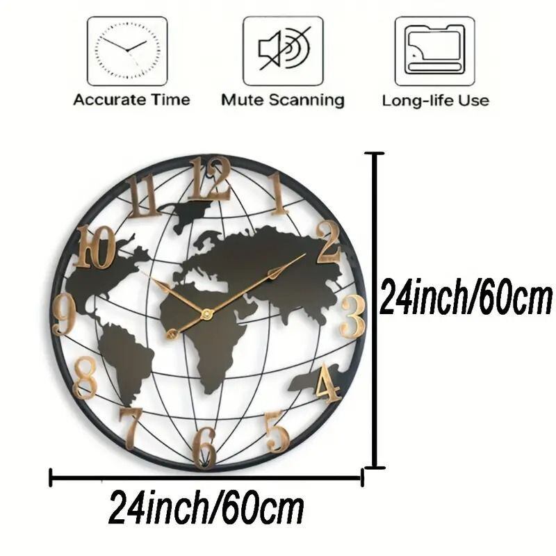 エレガントでモダンなデザインが特徴の金属製アナログ時計。世界地図をモチーフにした壁掛け時計が登場しました。シンプルでありながら存在感のあるデザインは、リビングルーム、寝室、キッチン、ダイニング、オフィスなど、どんな空間にもぴったり。
