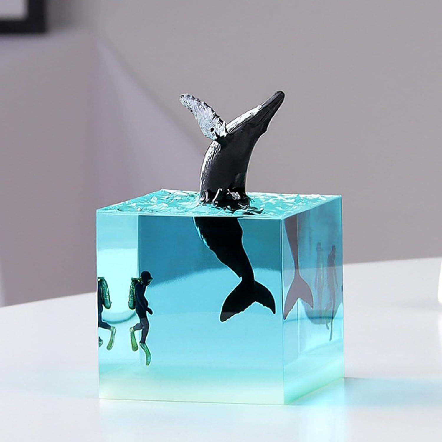 海洋をイメージした躍動的なデザインが特徴の可愛らしいキューブ形状の置物です。ジャンプするクジラの姿が、インパクトのあるアクセントになり、玄関やリビングルーム、寝室、さらにはオフィスや子供部屋まで、様々な場所に飾ることができます。