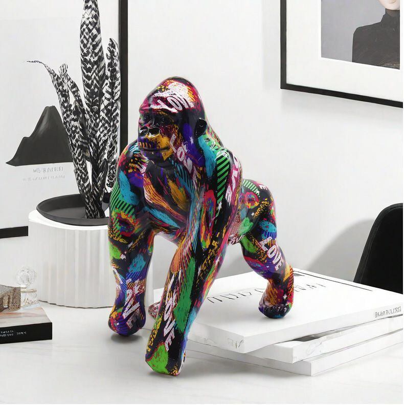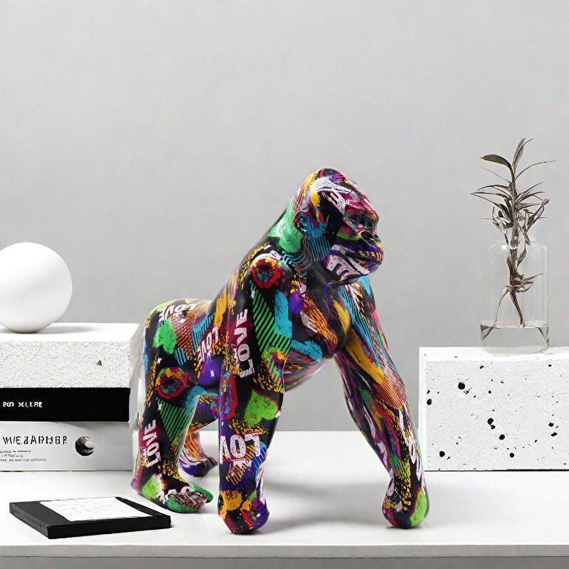 オブジェ「ゴリラ」 は、おしゃれでモダンなデザインが魅力のアートアイテムです。カラフルで可愛らしい姿は、玄関やリビングルーム、寝室、ダイニング、子供部屋、書斎、オフィスなど、どんな場所にもぴったり。デスクやテーブル、棚などに飾れば、一気に空間が華やかになります。