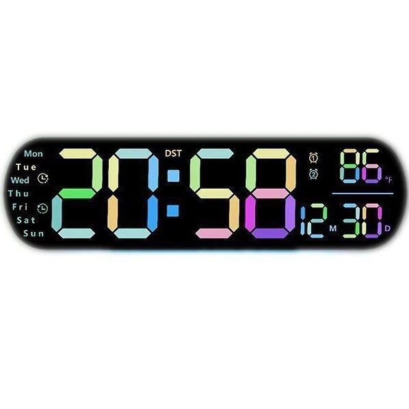 現代的でスタイリッシュなウォールクロックです。LEDディスプレイを備え、大きくて見やすい文字が特徴です。夜でも時刻を確認しやすいので、リビングルーム、寝室、キッチンなど、様々な場所で活躍します。おしゃれなデザインはどんなインテリアにもマッチし、プレゼントとしても喜ばれるアイテムです。