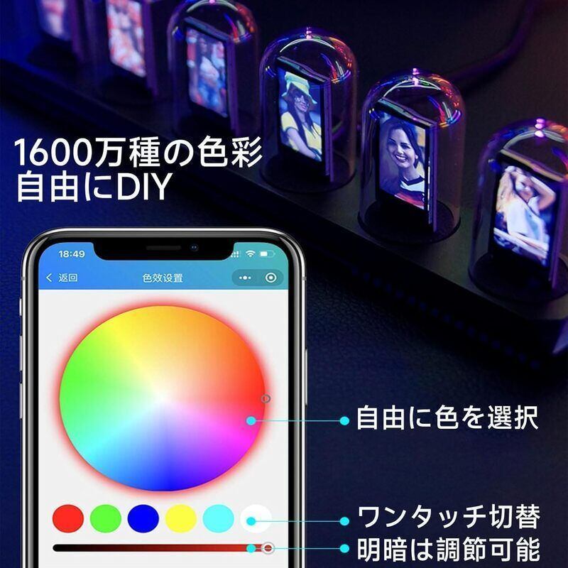 驚くべ疑似ニキシー管時計が登場しました!この卓上時計は、コンピューターネットワークからのセットアップによりLEDディスプレイで時間などを表示します。モダンでカラフルなデザインは、リビングルーム、寝室、ダイニング、子供部屋、書斎など、どんな場所にも映えます。おしゃれで可愛い印象を与えるこの時計は、プレゼントとしても最適です。