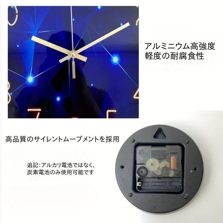 この時計はサイレント仕様で、静音性に優れているため、寝室やリビング、オフィスなど、さまざまな空間にぴったり。強化ガラスを使用しており、耐久性も抜群です。おしゃれでありながら機能性にもこだわった一品です。