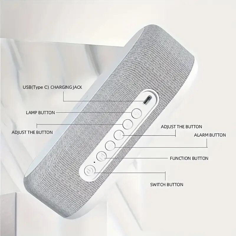 USB充電対応で、デスクやベッドサイドに置いても便利。LEDディスプレイは視認性が高く、時間や温度を一目で確認できます。夜間の使用にも最適なナイトライト機能で、リラックスしたい時にも役立ちます。