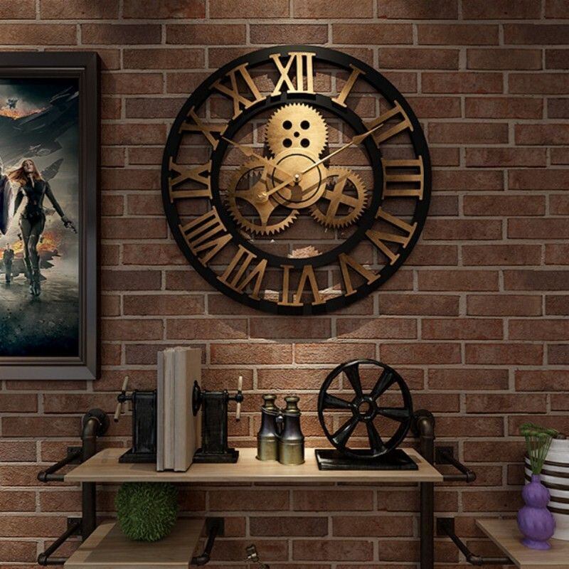 壁掛け時計 ウォールクロック アナログ ローマ数字 歯車 ギア 静音 サイレント ラウンド 大型 レトロ アンティーク おしゃれ お洒落 モダン かっこいい シンプル プレゼント 玄関 リビング 寝室 ダイニング 子供部屋 書斎 オフィス バー カフェ | Under River/海外輸入インテリア家具.雑貨