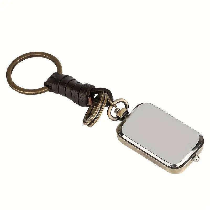 懐中時計 ポケットウォッチ キーリング ペンダント アナログ クォーツ デュアルタイムウォッチ ブロンズ スクエア バックル レザー おしゃれ ジェンダーレス レトロ アンティーク ヴィンテージ かっこいい シンプル エレガント スタイリッシュ プレゼント | Under River/海外輸入インテリア家具.雑貨