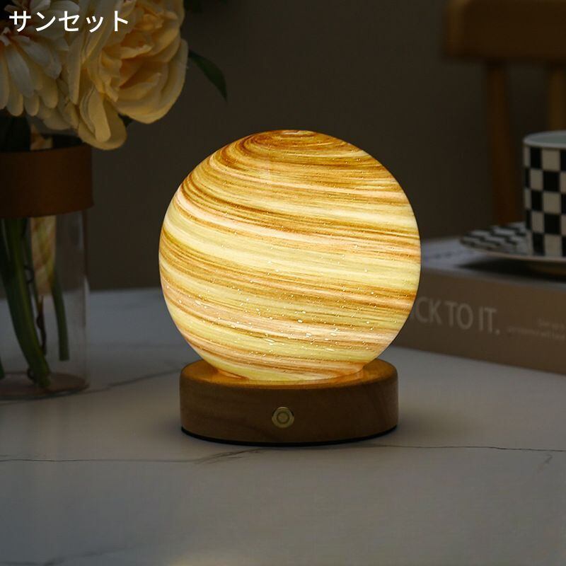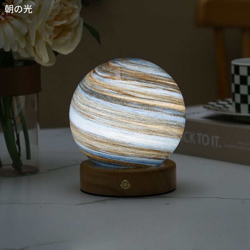 ナイトライト デスクライト テーブルライト 間接照明 惑星 プラネット 木製ベース LEDライト USB電源 おしゃれ モダン 幻想的 神秘的 かわいい プレゼント 玄関 リビングルーム 寝室 ダイニング オフィス 子供部屋 書斎 卓上 デスク テーブル 棚 | Under River/海外輸入インテリア家具.雑貨