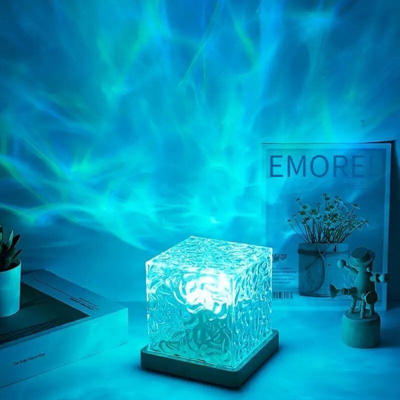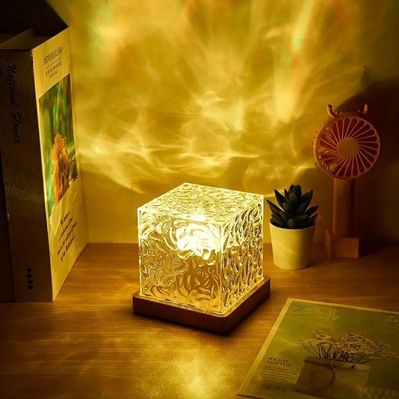 おしゃれでスタイリッシュなムードライトをご紹介します!このナイトライトは、テーブルに置いても映えるキューブ型デザイン。波紋のような美しい光の演出が、リビングルームや寝室、子供部屋など、あらゆる空間を心地よい雰囲気に変えてくれます。