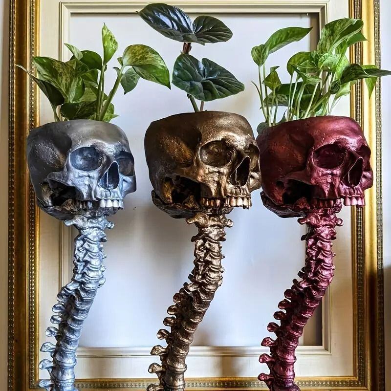 この「頭蓋骨と背骨のプランター」で、おしゃれで斬新なインテリアを楽しんでみませんか?