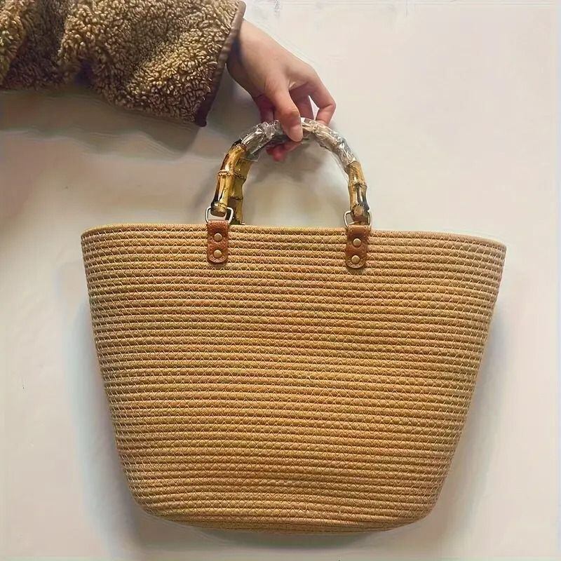 手作りロープトートバッグ 竹の関節デザイン ストローウィーブンハンドバッグ 日常使い 多用途 ファッション カバン レディーストートバッグ おしゃれ お洒落 | Under River/海外輸入インテリア家具.雑貨