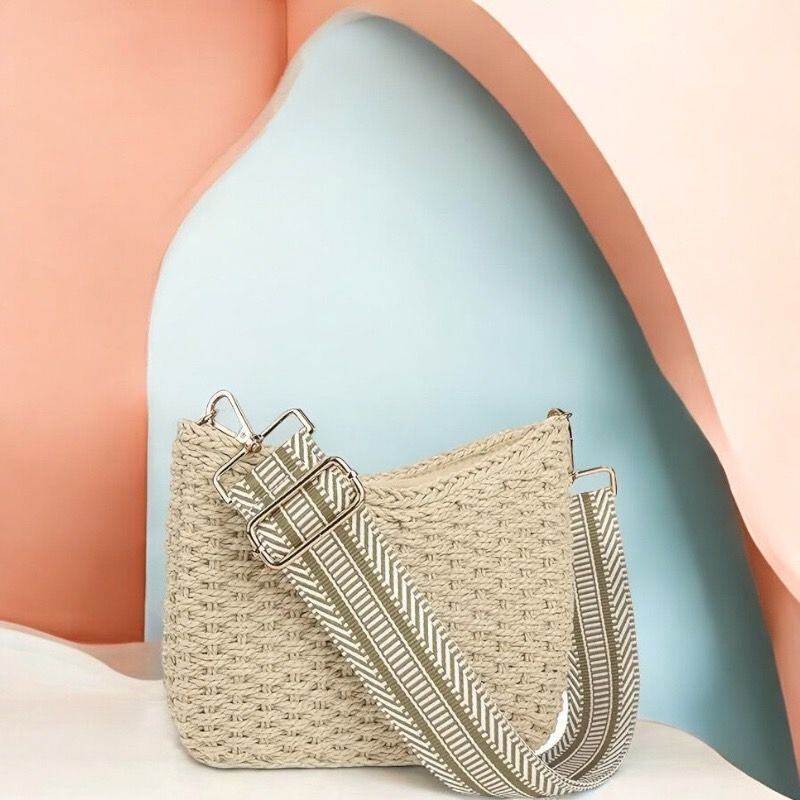 ハンドウエーブストラークロスボディバッグ ギターストラップ付 夏 トラベルショルダーバッグ レディース 女性用 カジュアル 洗濯不可 ファッション ホワイト おしゃれ お洒落 | Under River/海外輸入インテリア家具.雑貨