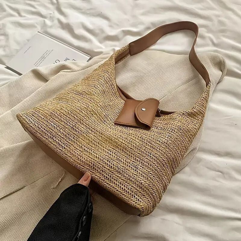 手織りハンドバッグ レトロ バケットバッグ ストローショルダ―バッグ 大容量 通勤 休日 ショルダーバッグ ファッション カバン レディース 女性用 ブラウン おしゃれ お洒落 | Under River/海外輸入インテリア家具.雑貨