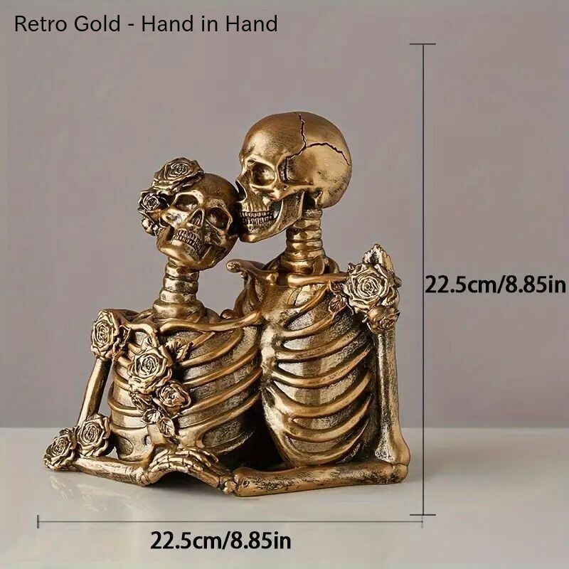 このユニークな「置物/フィギュア」は、骸骨(ドクロ、スカル)をモチーフにしたペアデザインが特徴のゴールデンオブジェです。レトロでヴィンテージ感溢れるスタイルは、シンプルでモダンなインテリアにもぴったりです。クールでありながらも可愛らしさを感じさせるデザインは、個性的な空間作りに最適です。